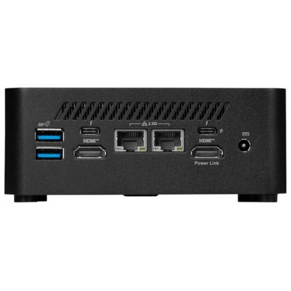 | Puertos E/S | Frontales - 1 x Entrada de micrófono/Salida de auriculares Combo1 - 2 x USB 10 Gbps Tipo A2 - 1 x Lector de tarjetas Micro-SD Laterales - 1 x ranura para interruptor de alimentación externo - 1 x ranura para candado Kensington Traseros - 2 x USB 10 Gbps Tipo A - 1 x salida HDMI (compatible con 4K a 60 Hz, según lo especificado en HDMI 2.1) - 2 x RJ45 LAN (2.5G) - 1 x salida HDMI (compatible con 4K a 60 Hz, según lo especificado en HDMI 2.1) compatible con MSI Power Link - 1 x conector CC - 1 x Thunderbolt 4 (DP 1.4 modo alternativo hasta 4K a 60 Hz / salida PD 10.15 W) - 1 x Thunderbolt 4 (DP 1.4 modo alternativo hasta 4K a 60 Hz / salida PD 11.15 W / entrada PD hasta 100 W) |