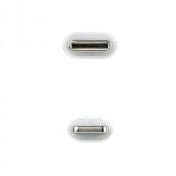 - Cable Lightning con conector tipo Lightning macho en un extremo y conector USB-C macho en el otro