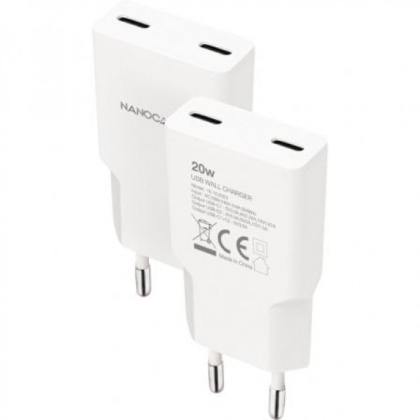 - Contenido del paquete: 1 x Cargador 2xUSB-C/PD 20W, blanco