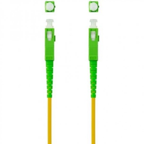 Especificaciones:. . Se utiliza para conectar la roseta de compañía de internet al router. Tipo de fibra: Monomodo G657A2 . Tipo de conector: SC/SC. Tipo de pulido: APC/APC. Diámetro exterior: 3 mm. Pérdida de inserción: <0.3dB. Pérdida de retorno: >;50dB. Sección del núcleo: 9/125 micrones. Revestimiento LSZH. Longitud: 5 metros. Color: Amarillo. NormativaS: RoHS. Test de Funcionamiento: 100% testado