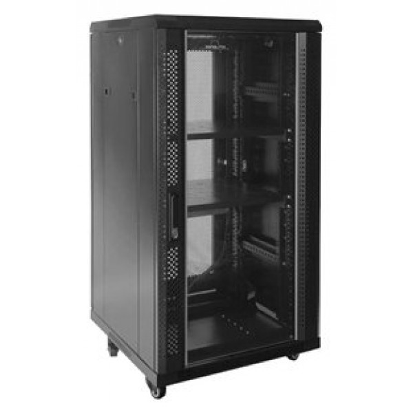 | Características | - Altura: 22U - Armario rack con ancho de perfil estándar de 19 - Puerta delantera de cristal - Puerta trasera perforada - Apertura de seguridad Handylock en puerta frontal - Llave en puerta posterior - Estructura básica totalmente desmontable - Techo y suelo con entradas de cables pretroqueladas y ranuras de ventilación - Soportes o pies regulables en altura - Perfiles de rack numerados - Perfiles desplazables en profundidad - Paneles laterales desmontables de fácil apertura con cierre - Espacio accesible por puerta frontal, trasera y laterales - Acabados para evitar electro-estática y entrada de polvo - Cumple con las normativas medioambientales CE y RoHS -Tratamiento: desengrasado, limpiado con ácido y pintura fosfórica anti-óxido. - Grado de Protección: IP20 (protección contra la entrada de polvo) - Capacidad de carga: 800 Kg (sobre pies) y 400 Kg (sobre ruedas) - Grosor de acero: Carriles 2mm, ángulos 1,5mm resto 1,2mm Dimensiones y peso - 600 x 800 x 1166 mm - 73 kg Contiene - 4 ruedas con freno - Tornillería de montaje - Pies regulables en altura - Juego de llaves para cerraduras incluido |