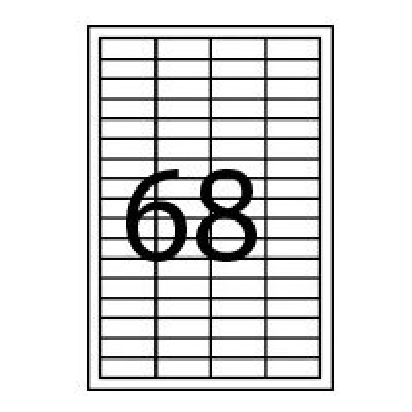 Etiqueta adhesiva en formato A4 y con un tamaño de 48,5 x 16,9 mm. Cada caja tiene 100 hojas. Los cantos son rectos. Aptas para impresoras láser, inkjet o copiadoras. Gran cama de troqueles.