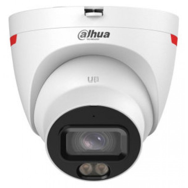 Domo IP Dahua de 8MP con óptica fija de 2,8 mm. 0,0008 lux. Iluminación cálida hasta 30 m. Compresión H.265+. Tecnología WizColor. WDR 120?dB. Protección perimetral y SMD Plus. Micrófono integrado. Ranura MicroSD. Alimentación PoE o 12 VDC. Protección IP67.