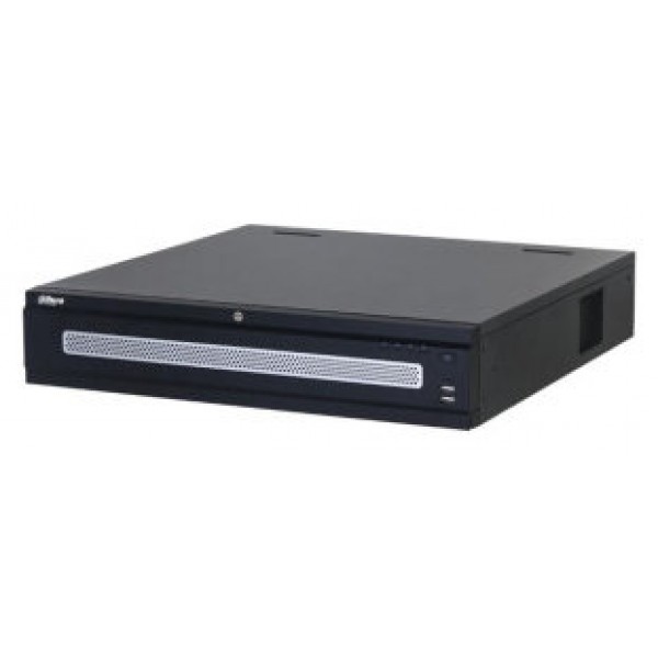 NVR IP Dahua de 128 canales. Smart H.265+. 1280Mbps de entrada (640Mbps con AI activada). 4 HDMI (HDMI3 a 8K) y 2 VGA. Protección perimetral, SMD Plus, reconocimiento/detección facial, ANPR. 1 entrada / 2 salidas de audio. 16 entradas / 8 salidas de alarma. Capacidad de 8 HDD SATA. 2 RJ45 de 2,5 Gigabit, Onvif. 2 USB 2.0, 2 USB 3.0, 1 RS485, 1 RS232. 220V CA