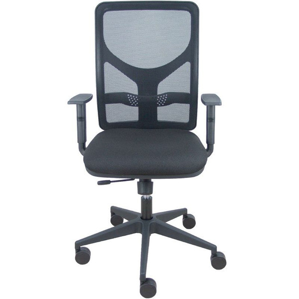 Silla de oficina Motilla con mecanismo Sincro/Traslack tapizada con Tela color Negro. Equipada con lumbar 1D, Brazos 1D y Ruedas 65mm nailon