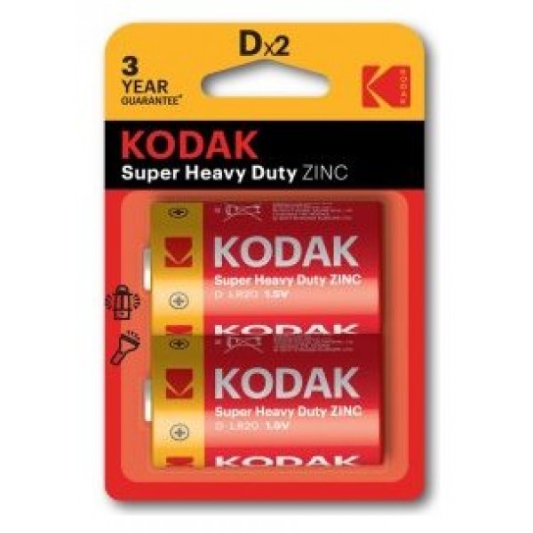 PILAS D LR20 KODAK EXTRA HEAVY DUTY ZINC PACK 2 UNIDADES 6000 mAh 1.5V (ecotasas incluidas)