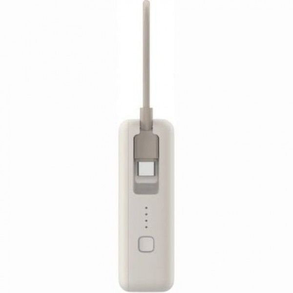 Equipada con un cable USB-C integrado que se puede utilizar para cargar smartphones convencionales y la propia batería externa. El cable también se transforma en un cordón para facilitar su transporte. Viaja sin peso y sin necesidad de cables adicionales.