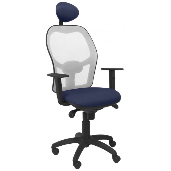 PIQUERAS Y CRESPO Silla Jorquera malla gris asiento bali azul marino con cabecero fijo
