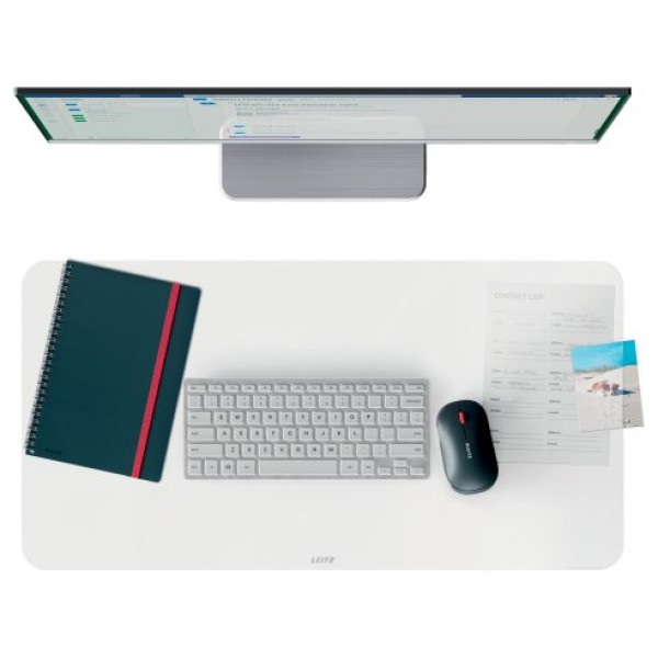 Mantente productivo y siéntete bien dondequiera que te lleve tu jornada laboral con la alfombrilla de escritorio transparente Leitz. Se trata de una discreta y elegante alfombrilla protectora de escritorio diseñada para mantener tu espacio de trabajo ordenado y organizado. Su gran superficie de 70 x 36 cm protegerá tu escritorio de arañazos, rozaduras y salpicaduras. Multifuncional, su generosa anchura ofrece espacio para teclado, ratón, bloc de notas y accesorios. Con esquinas redondeadas y fabricado con material antideslizante, es fácil de limpiar e impermeable. Además, el acabado transparente mate permite colocar debajo elementos adicionales, como calendarios o fotos, para facilitar tu consulta. Se adapta perfectamente a cualquier escritorio estándar, así como a la estación de trabajo Leitz Ergo. FEEL GOOD con Leitz.
