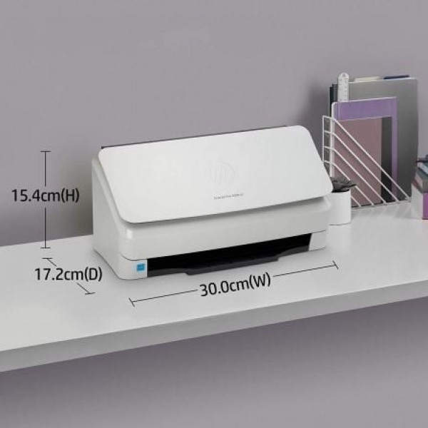 Libere espacio para trabajar. Este escáner HP ScanJet Pro es pequeño y delgado, con un diseño perfecto para el escritorio.