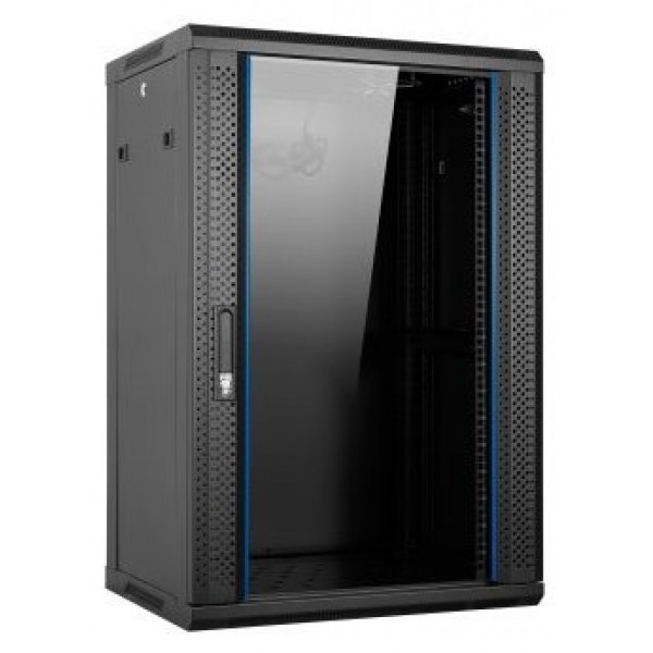 ARMARIO MURAL 19 AITEN DATA 18U AI6618 600 x 600 x 903 2L COLOR NEGRO PUERTA DE CRISTAL TEMPLADO INCLUYE BANDEJA Y VENTILACIÓN