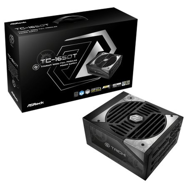 Asrock Taichi TC-1650T. Potencia total: 1650 W, Funciones de protección de poder: Sobreintensidad, Sobrevoltaje, Sobrecalentamiento, Sobrecarga, Cortocircuito, Bajo voltaje. Alimentador de energía para tarjeta madre: 20+4 pin ATX, Longitud del cable de alimentación de la placa base: 60 cm, Longitud del cable de alimentación SATA: 100,450 mm. Utilizar con: PC, Factor de forma de fuente de alimentación (PSU): ATX, Certificación 80 PLUS: 80 PLUS Titanium. Color del producto: Negro, Tipo de enfriamiento: Activo, Diámetro de ventilador: 13,5 cm. Ancho: 150 mm, Profundidad: 180 mm, Altura: 86 mm