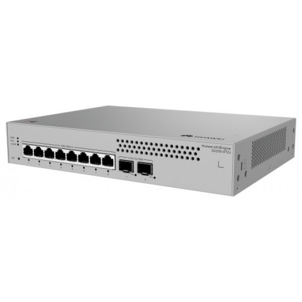 HUAWEI eKit S220S Series S220S-8T2J. Tipo de interruptor: Gestionado, Capa del interruptor: L2. Puertos tipo básico de conmutación RJ-45 Ethernet: Gigabit Ethernet (10/100/1000), Cantidad de puertos básicos de conmutación RJ-45 Ethernet: 8. Tabla de direcciones MAC: 16000 entradas, Capacidad de conmutación: 26 Gbit/s. Estándares de red: IEEE 802.1D, IEEE 802.1s, IEEE 802.1w. Conector eléctrico: Conector de alimentación AC-in. Montaje en rack, Factor de forma: 1U