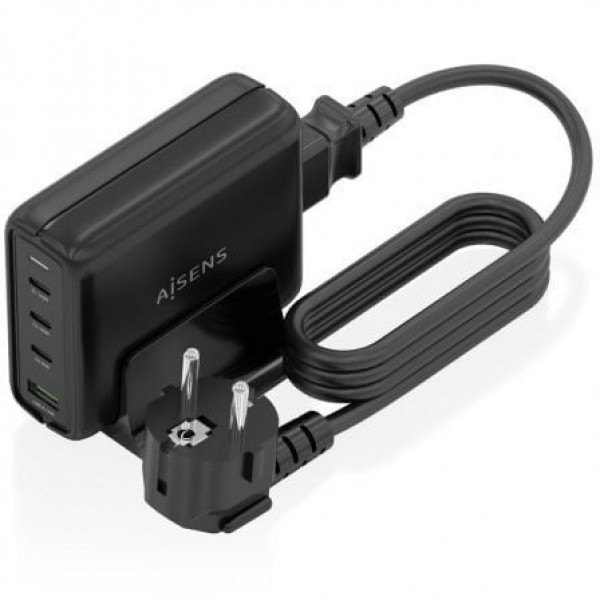 AISENS - CARGADOR SOBREMESA GaN 140W, 3xUSB-C PD3.1 QC4.0 QC5.0, 1xUSB-A QC3.0, NEGRO