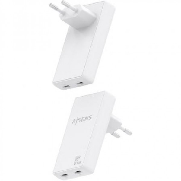 AISENS - CARGADOR DE PARED GaN ULTRA DELGADO 65W, 2xUSB-C PD3.0 QC4.0, BLANCO