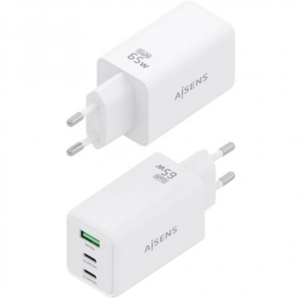 ASCH-65W3P072-W – Cargador GaN 65W, 2xUSB-C PD3.0 QC4.0, 1xUSB-A QC3.0, Blanco