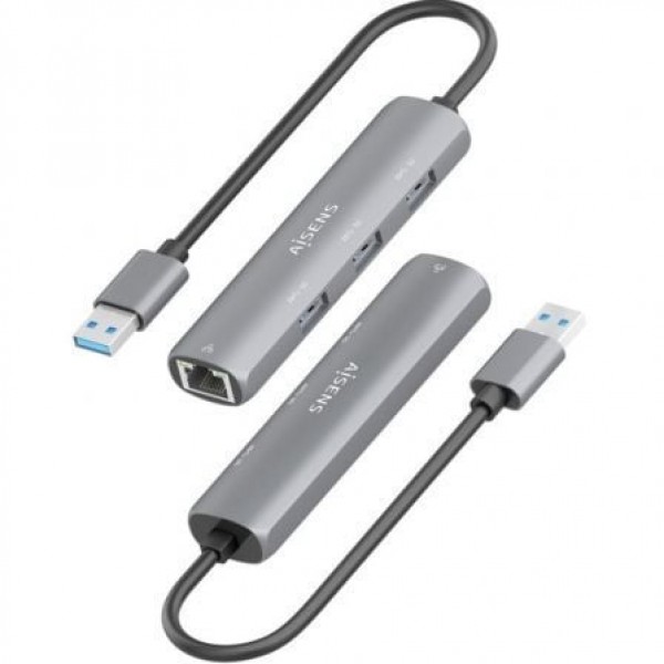 ASUC-4P034-GR – USB3.0 Dock USB-A a Ethernet Gigabit + HUB 3xUSB-A, Gris, 15cm