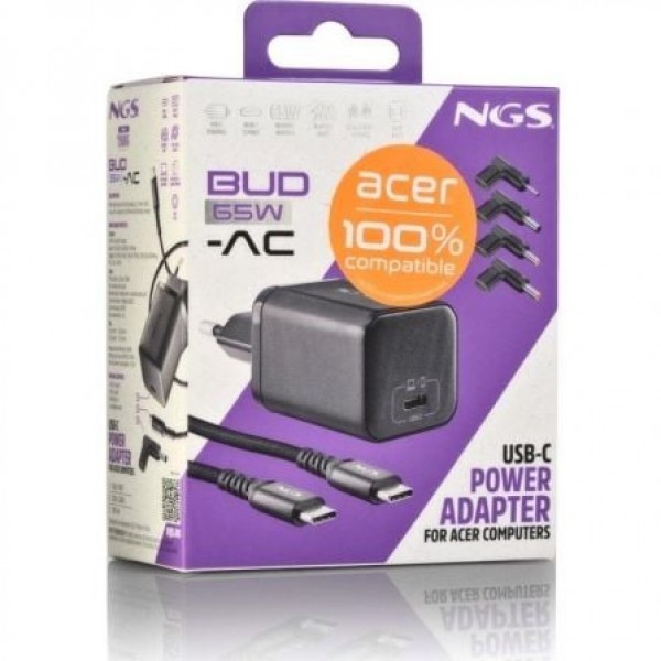 - NGS BUD 65W-AC es el cargador ideal para quienes necesitan potencia, seguridad y versatilidad en un formato reducido y fácil de transportar.