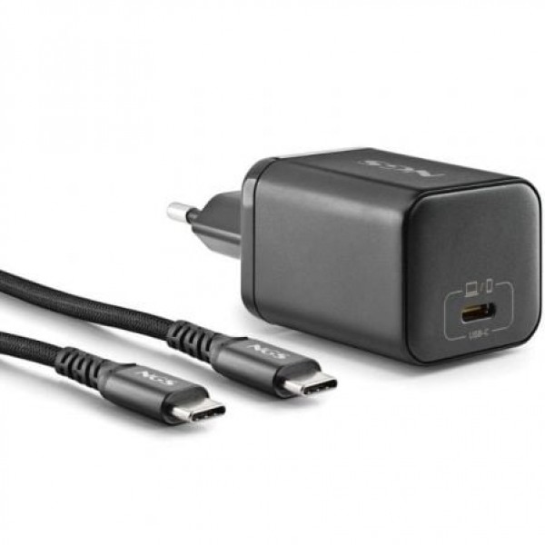 CARGADOR GAN DE PARED ULTRARÁPIDO DE 65W CON SALIDA TIPO USB-C y CABLE USB-C A USB-C DE 1,5 M