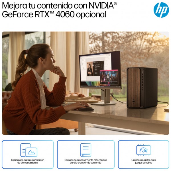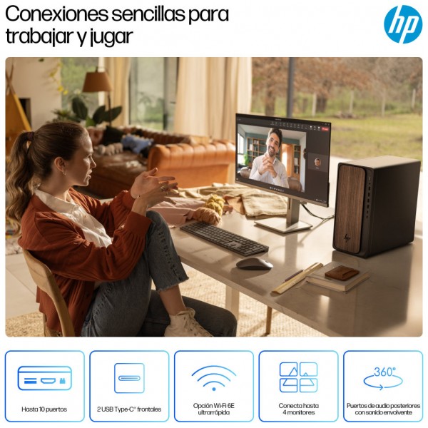 El ordenador de sobremesa con IA HP OmniDesk ofrece una eficiencia y un rendimiento óptimos para las tareas diarias más exigentes. Equipado con el procesador Intel Core™ Ultra[1] y tecnología de IA integrada, se ha configurado para potenciar la productividad diaria con los puertos más recientes, una gran cantidad de almacenamiento y una memoria DDR5 para tiempos de arranque más rápidos.