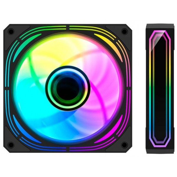 | Características | - Rodamiento hidráulico de larga duración - Baja sonoridad - Gran flujo de aire - Esquinas de goma que evitan las vibraciones - Controlador ARGB integrado - Velocidad de giro: 1200 rpm ± 10% - Voltaje: 5VDC - Número de aspas: 7 - Flujo de aire: 35CFM max - Sonoridad: 26 dBA - Tipo de rodamiento: Hidráulico - Max. presión estática: 0.55 mm H2O - Vida útil: 40000 horas Dimensiones - 120 x 120 x 25 mm |