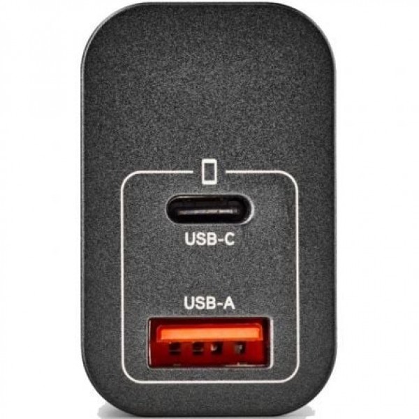 - Cargador GaN de pared con una salida USB-C (PD & PPS) y una salida USB-A QC 3.0 (Quick charge) de hasta 30W de potencia máxima para cargar dispositivos de manera rápida.
