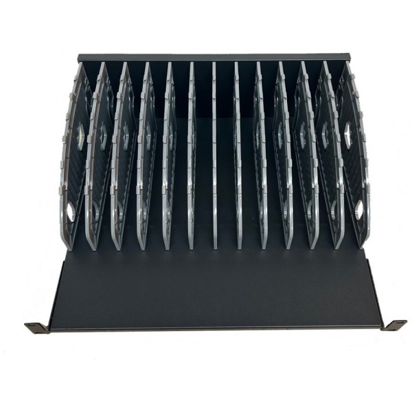 Optimice su espacio y mantenga sus dispositivos cargados y listos para usar con nuestro estante de carga, diseñado para acomodar hasta 12 computadoras portátiles, tabletas y teléfonos inteligentes. Perfecto para oficinas, escuelas y entornos profesionales, este estante se puede montar en rack de 19" y ofrece una solución de carga ordenada y segura.