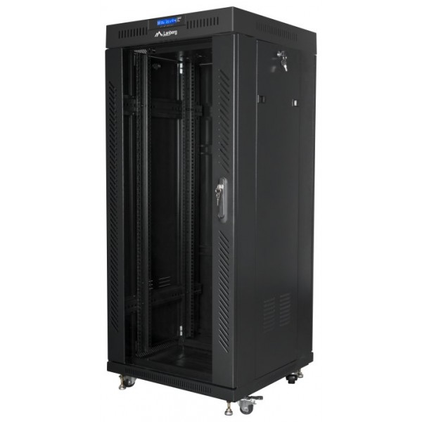 ARMARIO LANBERG 19" 27U 600X600 FLAT PACK NEGRO PUERTA CRISTAL CON LCD V2