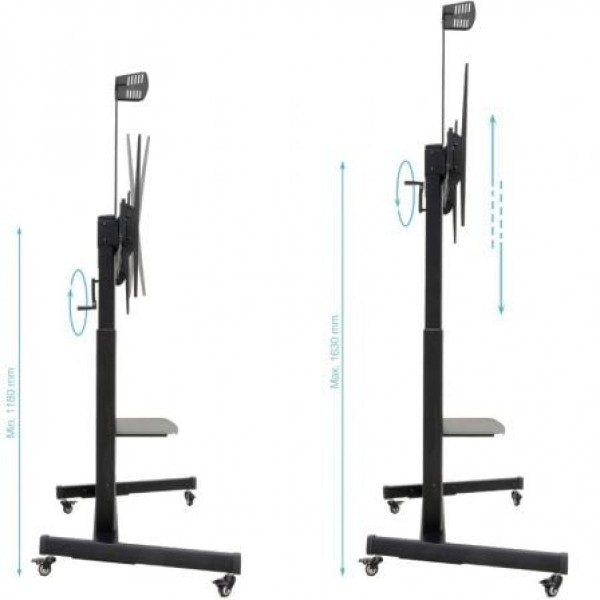 “AQUILES” Soporte de Suelo con Ruedas con Regulación de Altura para Pantallas 60"-100", Negro