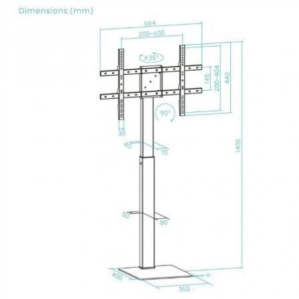 “MIDAS” Soporte de Suelo para Pantallas 37"- 70", Rotación 90°, Negro