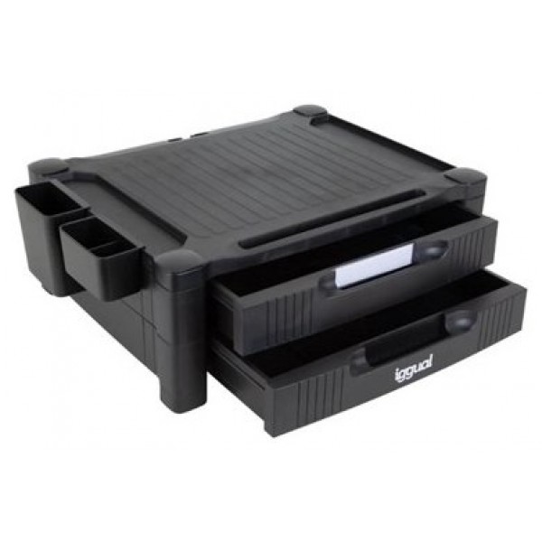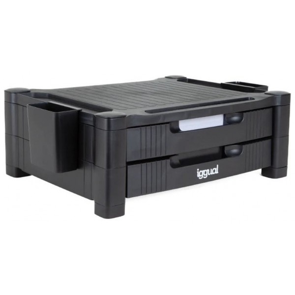 | Características | - Soporte elevador de monitor con patas - Elevable - Ranura delantera para tablet y móvil - 2 cajones frontales - 2 huecos laterales - 2 gavetas laterales extra - 4 separadores internos - Peso máximo soportado: 30 kg - Altura mínima: 13 cm - Altura máxima: 19 cm - Superficie de apoyo: 45,7 x 33 cm |