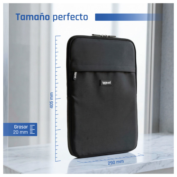 La funda iggual Everyday Use Sleeve protege portátiles y tablets de hasta 16” gracias a su interior acolchado con burbujas de impacto, diseñado para absorber golpes y vibraciones en el uso diario. Su formato ligero y compacto permite transportar el equipo de forma segura sin añadir volumen.