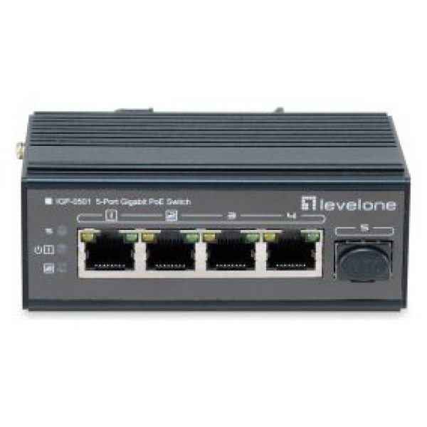 SWITCH INDUSTRIAL LEVEL ONE IGP-0501 5P POE GIGA Y 1P SFP 240W CARRIL DIN