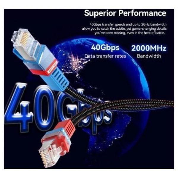 El cable Cat8 incorpora un blindaje doble con capas de papel de aluminio y trenza metálica. Este diseño robusto protege eficazmente contra interferencias electromagnéticas (EMI), lo que protege la integridad de la señal y mejora el rendimiento general. Como resultado, puede contar con una conexión constante y confiable, sin importar su entorno de juego.