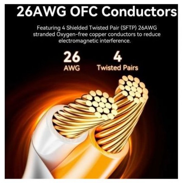 En el corazón del cable Ethernet Cat8 se encuentran sus conductores de cobre libre de oxígeno (OFC) de 26 AWG. Estos conductores de primera calidad están trenzados y cuentan con 4 pares trenzados blindados (SFTP). Esta configuración reduce significativamente la interferencia electromagnética, lo que mejora la calidad de la señal y garantiza que su conexión se mantenga estable incluso durante las horas pico de juego. Para los jugadores, esto se traduce en interacciones receptivas en tiempo real y una ventaja competitiva sobre los oponentes.