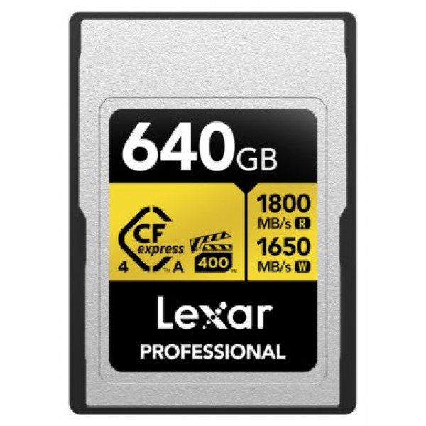 LEXAR 640GB PROFESSIONAL CFEXPRESS™ 4.0 TYPE A CARD GOLD SERIE, UP TO 1800MB/S READ 1650MB/S WRITE. VPG 400,IP68