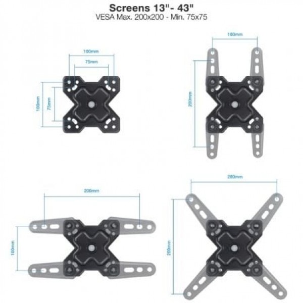 SOPORTE PARED PANTALLAS 13-43 GIRA/INCLI NEGRO BRAZO