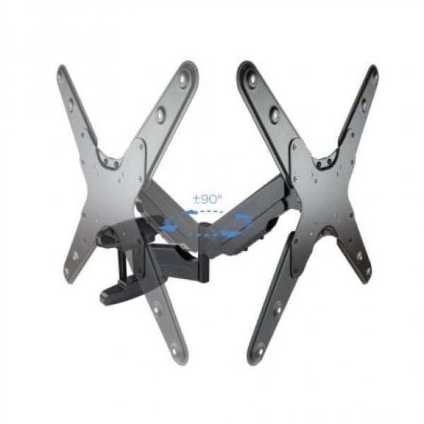 Descripción:. Soporte de fijación en pared para pantallas planas (entre 23"" y 55"") y hasta un máximo de 30 kg de peso.. Fabricado en metal de alta resistencia, siempre con la calidad de los productos TooQ.. Especificaciones:. Para pantalla (monitor / plasma / LCD / LED) 23""-55"". VESA Máximo: 400x400 mm / Compatible con los formatos de fijación de pantalla VESA 75x75, 100x100, 200x100, 200x200, 300x300, 400x200, 400x300, 400X400 mm. Carga: 5 kg - 30 kg. Nivelación de pantalla: +3º / -3º. ángulo de Inclinación: +5º / -15º. ángulo máximo de giro: -90º / +90º. Brazo articulado con pistón de gas. Compatible con tv curvo. Distancia de la pared: 61 mm - 565 mm. Incluye gancho recoge cables. Color: Negro. Contenido del Paquete:. 1 x Soporte. 1 x Kit montaje (No incluye herramientas). 1 x Manual de instalación