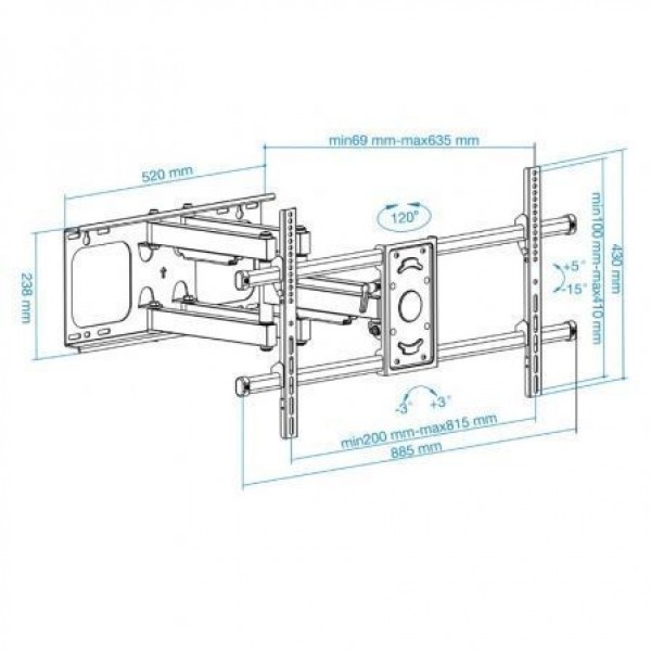 +3° - - 3° - distancia de pared: 69 - 635 mm - sistema de organización de
