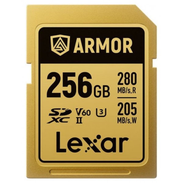 LEXAR 256GB PROFESSIONAL ARMOR GOLD SDXC UHS-II CARDS, UP TO 280MB/S READ 210MB/S WRITE C10 V60 U3,STAINLESS STEEL CASING, IP68