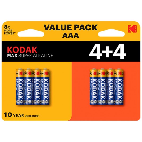 PILAS AAA KODAK MAX ALCALINA LR3 PACK 8 (4+4) UNIDADES