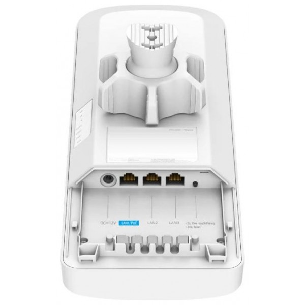 | Características | - Estándar Wi-Fi: Wi-Fi 5 - Velocidad inalámbrica máxima: 867 Mbps - Clasificación IP: IP55 - Temperatura de funcionamiento: –30 °C a +65 °C (–22 °F a +149 °F) - Puertos fijos: 3 puertos 10/100/1000BASE-T - Certificación: CE - MIMO: 2x2 MIMO - Ganancia de antena: 15 dBi - Polarización: H: 120°, V: 13° - Distancia recomendada: 5 km Dimensiones y peso - 355 x 124 x 48 mm - 0,83 kg |