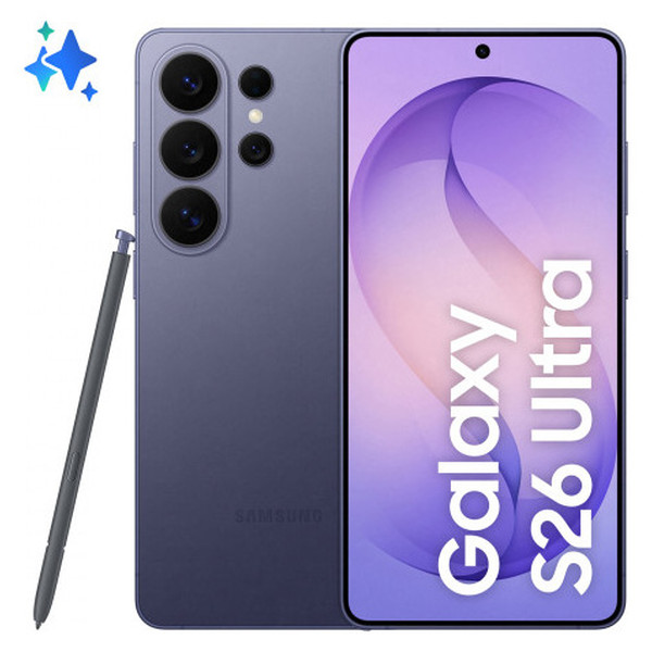 Samsung Galaxy S26 Ultra . Diagonal de la pantalla: 17,5 cm (6.9"), Resolución de la pantalla: 3120 x 1440 Pixeles. Familia de procesador: Snapdragon, Modelo del procesador: 8 Elite Gen 5. Capacidad de RAM: 12 GB, Capacidad de almacenamiento interno: 256 GB. Resolución de la cámara trasera (numérica): 200 MP, Tipo de cámara trasera: Cámara cuádruple. Capacidad de la tarjeta SIM: SIM doble. Sistema operativo instalado: Android 16.0. Capacidad de batería: 5000 mAh. Color del producto: Violeta. Peso: 214 g