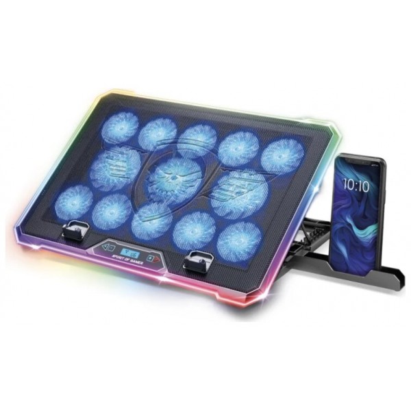 | Características | - Portátil de apoyo: 10 a 17 pulgadas - Contralor: 6 velocidades Visualización de la pantalla Apagar la alimentación eléctrica RGB 10 Modos - Altura ajustable: 8 posiciones (10° a 30°) - Ventiladores: 13 ventiladores led azul (3 x 80 mm y 10 x 60 mm) - Velocidad: Ventiladores de 60 mm Ventiladores de 80 mm - Flujo de aire: 169 CFM - Nivel sonoro: 25 - Conexión: USB - Duración del cable: 50 cm Materiales - El plástico - Rejilla de malla metálica Dimensiones - 41,5 x 30 x 3 cm Contenido - Cable USB - Guía de instalación rápida - Enfriador AirBlade 1300 RGB |