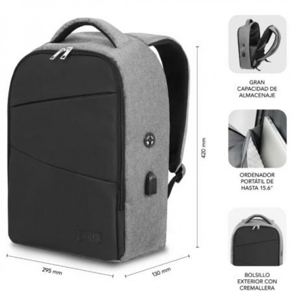 Mochila Antirrobo para portátiles de un tamaño hasta 15,6”Departamento independiente con espacio acolchado para el portátil con sistema AIR PADDING de alta protección y doble cremallera de cierre con modo de apertura desde la espalda que evita cualquier tipo de intento de robo.