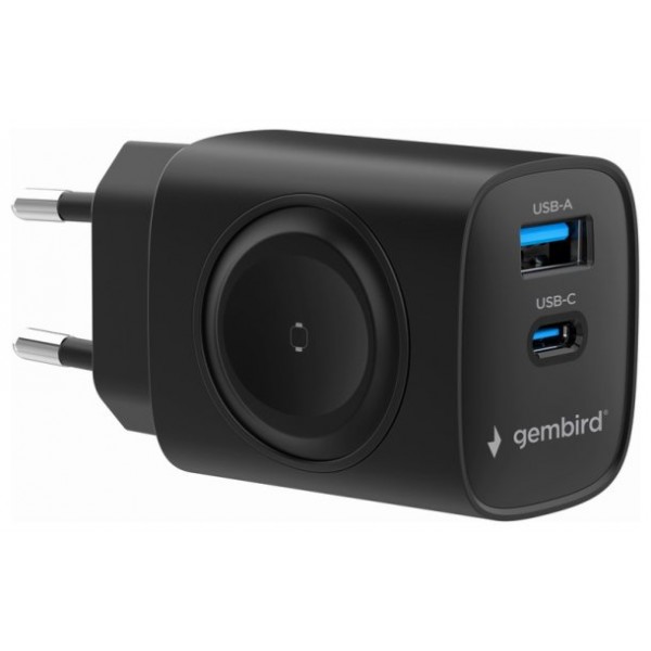 CARGADOR GEMBIRD 2-1 USB CARGA RAPIDA + APPLE WATCH NEGRO