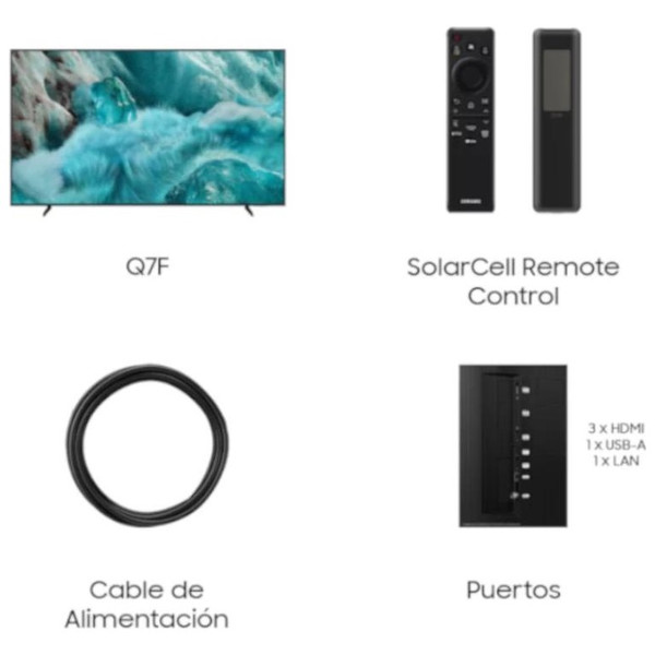 | Conectividad | - Wi-Fi 5 - Bluetooth 5.3 Puertos - 3 x HDMI - 1 x USB-A - HDMI Tasa máxima de entrada: 4K 60Hz (for HDMI 1/2/3) - 1 x ethernet (LAN) - 1 x entrada RF (Terrestre / Entrada Cable / Entrada satélite) - 1 x clavija CI - Anynet+ (HDMI-CEC) - HDMI Audio Return Channel: eARC |