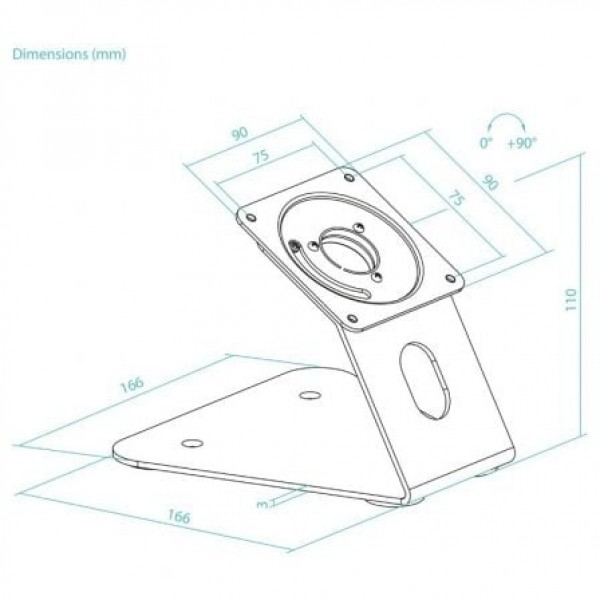 EspecificacionesCompatible con VESA: 75x75Peso máximo soportado: 3 KgInstalación tanto en sobremesa como en paredÁngulo fijo de inclinación: 30°Ángulo de rotación: 0°/+90°Altura del soporte: 124 mmMedidas de la peana: 166x80 mmSistema de gestión de cablesAlmohadillas de silicona para la baseColor: NegroMaterial: fabricado en acero de alta calidadPeso neto: 0,739 Kg. Peso bruto: 1,038 kgMedidas del embalaje: 185x175x140 mmMarco antirrobo NO INCLUIDO