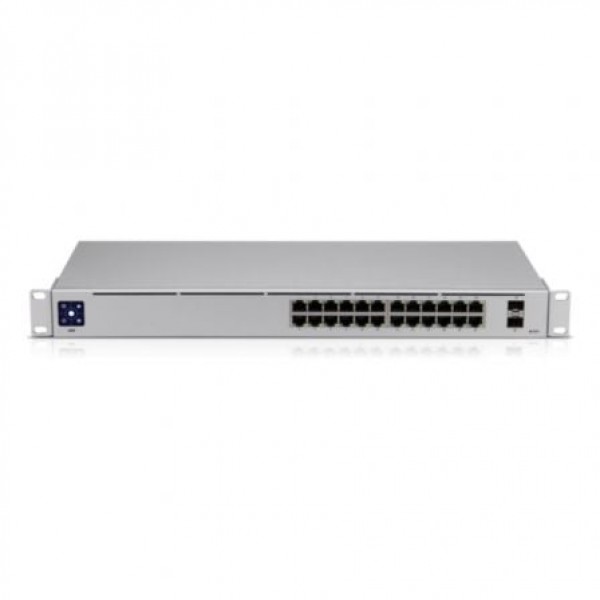 Switch de 24 puertos Gigabit y 2 puertos 1G SFP. Configurable en layer 2. Cuenta con una pantalla tactil LCM de 1.3"" para proporcionar información sobre el estado del dispositivo en tiempo real. Kit 1U rackmountable incluido. El USW-24 es un switch de Capa 2 configurable con 24 puertos Gigabit Ethernet y 2 puertos SFP. Los puertos SFP brindan opciones de enlace ascendente de fibra de 1 Gbps a su red empresarial. El USW-24 cuenta con una pantalla táctil de 1.3 "", tamaño compacto y diseño sin ventilador. La pantalla táctil muestra el estado actual del equipo y la información para un diagnóstico rápido. Administrado y configurado por el controlador de red UniFi con soporte de la aplicación móvil UniFi, USW-24 ofrece un amplio conjunto de funciones y protocolos de conmutación de capa 2 avanzados, incluido el modo de funcionamiento (conmutación, duplicación o agregado) por puerto.. . Especificaciones:. . Dimensiones442.4 x 200 x 43.7 mm. Peso 2.70 kg (5.95 lb). sin Rackmount Brackets 2.79 kg (6.15 lb). Interfaces0. Interfaces de red (24) 10/100/1000 RJ45 Ports / (2) 1G SFP Ethernet Ports. Management Ethernet In-Band. Método alimentación100-240VAC, 50/60 Hz, Universal Input. Fuente de alimentaciónAC/DC, Internal, 36W. Rango soportado voltaje100 to 240VAC. Consumo máximo25W. LEDs. RJ45 Data Ports Speed/Link/Activity. SFP Data Ports Link/Activity. ESD/EMP ProtecciónAir: ± 16 kV, Contact: ± 12 kV. Shock y VibracionETSI300-019-1.4 Standard. Operating Temperature-5 to 45º C (23 to 113º F). Operating Humidity10 to 90% Noncondensing. CertificationsCE, FCC, IC