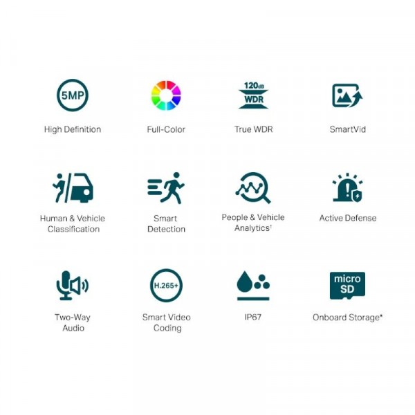 | Características | Red - Protocolo: TCP/IP, UDP, ICMP, HTTP, HTTPS, DHCP, DNS, RTSP, NTP, UPnP UDP, SSL/TLS - ONVIF - API: Open Network Video Interface (Profile S) - Vista en vivo simultánea 3 transmisiones principales y 3 subtransmisiones - Client: VIGI App, VIGI Security Manager, Web UI, VIGI VMS - Navegador web: Google Chrome® 57 and above Firefox® 52 and above Safari® 11 and above Microsoft® Edge 91 and above - Nube - Seguridad: Protección con contraseña, cifrado HTTPS, filtro de dirección IP, autenticación implícita Alarma y Gestión de Eventos - Evento inteligente Clasificación de personas y vehículos Detección de intrusiones Detección de cruce de líneas Región que ingresa a la detección Detección de salida de región Detección de objetos abandonados Detección de eliminación de objetos Detección de merodeo Marco inteligente Detección de personas Detección de vehículos - Evento Básico Detección de movimiento Detección de manipulación de vídeo Excepción (inicio de sesión ilegal) Detección de cambio de escena - Enlace de alarma Grabación de vídeo en tarjeta de memoria Envío de mensajes Advertencia audible Luz blanca intermitente - Notificación de salida: Mensaje push Alimentación - Fuente de alimentación 12V DC ± 5%, Max. 9.7 W, 5.5 mm Coaxial Power Plug PoE: 802.3af/at, class 0, Max. 10.7 W Dimensiones y peso - 74 × 184 × 74 mm - 0.525 Kg Contiene - Cámara de red VIGI - Guía de inicio rápido - Accesorios para cables impermeables - Accesorios de montaje |